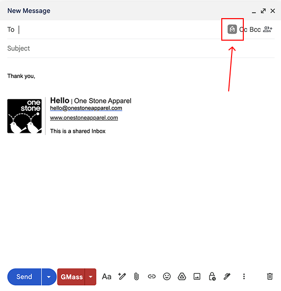 - You will see a new, red “GMass” button next to the regular blue Send button.